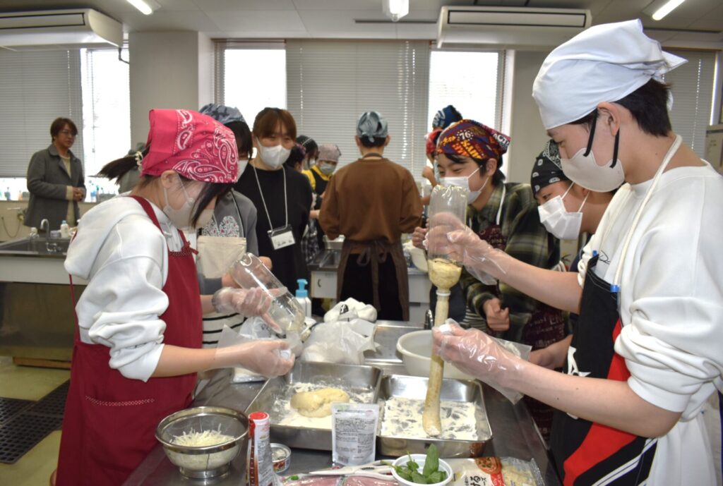 ガスによってスルンと生地が出ます